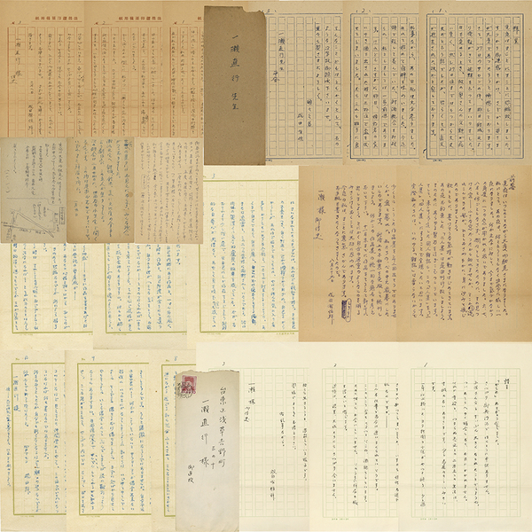 • 解説 一瀬直行(澤龍)宛 筆名本名:成田有恒 書簡<ペン26行・手渡し封筒付 サロン延期の知らせ/3月2日 ペン29行・封筒欠 肉体的にも精神的にもみじめになって、早朝、大兄のもとへころがりこんだ次第だったのですが、~/昭和35年6月10日(消印)ペン21行・封筒付 近況報告/8月29日 ペン28行・封筒欠 二人の同人誌「二人集」刊行計画に対する決意/4月17日 ペン91行(1枚目欠)封筒欠>/葉書<昭和23年(推定)12月12日 ペン7行 忘年会の案内/昭和25年(推定)1月30日 ペン7行 翌月の例会の誘い/昭和31年3月2日 ペン10行 近況報告>