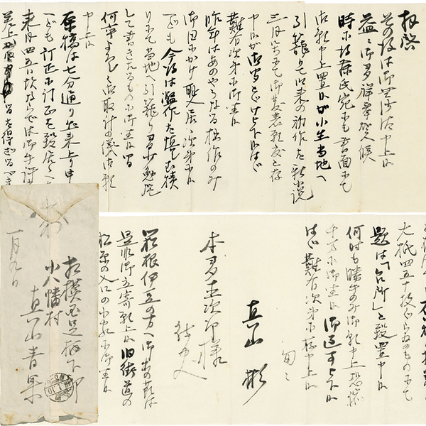 • 解説 本多直次郎宛 明治43年1月9日 毛筆32行 封筒付 「拝啓 その後は御無沙汰申上候 益々御多祥奉賀候 ~ 御返事被下候はゞ 難有次第に存申上候 匆々 真山彬 本多直次郎様待史 (追伸)箱根伊豆の方へ御出の節は是非御立寄願上候 ~」