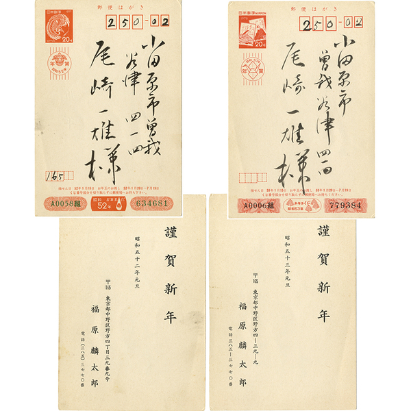 • 解説 尾崎一雄宛 昭和52年・53年元旦 毛筆宛名 印刷葉書