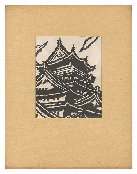 • 解説 木版 17.2x13.9cm(窓サイズ)/34.5x26.8cm(台紙サイズ)ed.1001枚少点シミ 少マットヤケ ※台紙貼付のため窓から確認できる範囲のみ 「きつつき版画集 第2号」より 自刻自摺 台紙(裏面に題箋の貼付。ヤケ有)に貼付