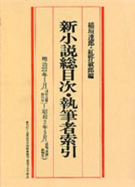 • 解説 本書はマイクロ・フィッシュ版「新小説」全403冊の総目録としてだけでなく、独立した「新小説」の書誌としても利用可能。「新小説」創刊号から「黒潮」終刊号までの〔総目次〕〔執筆者索引〕〔解説〕から成る。〔執筆者項目〕の中には「新小説」の特色でもある、〔雅号索引〕〔口絵索引〕〔写真目録〕を加えた。〔雅号索引〕には明確な判定のできない筆者を総て収めた。〔口絵索引〕は色刷り口絵、表紙画、挿し込み絵葉書、彫刻、工芸写真等の製作者を美術家名毎に検索できるようにした。〔写真目録〕には口絵写真を年月順に細目を含めて列挙した。