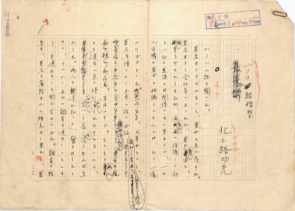 • 解説 『一つの結婚型』 ペン書 400字詰原稿用紙5枚完 北小路功光は柳原白蓮の息子。結婚制度が時代の感覚となじまなくなっていること。「オール女性」掲載。(種別)雑誌記事 #八木書店近代自筆物/1.草稿類 #八木古書2025年7月新蒐 code09626 ※自筆物につきましては、毎月25日前後に新蒐品を追加しております。PDF形式で御覧になりたい方は https://company.books-yagi.co.jp/archives/news/10928 を参照ください。94号目録(R7.1)以後の追加は「#八木古書2025」で検索できます。