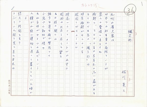 • 解説 『縄文杉』 ペン書 400字詰自家用箋2枚完 掲載誌不明。(種別)現代詩 #八木書店近代自筆物/1.草稿類 #94号近代文学特輯 code09175 ※自筆物につきましては、毎月25日前後に新蒐品を追加しております。PDF形式で御覧になりたい方は https://company.books-yagi.co.jp/archives/news/10928 を参照ください。