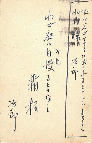 • 解説 北村卓三宛 ペン書 5行 昭35・11・1(消印) 返信葉書 汚れ 知人が三友社に入ったか。「佐々君がそちらにおられるとのこと よろしく 北村様 次郞 わが庭に自慢(みせ)るものなし霜柱 次郞」。(発信地)吉祥寺(受信地)三友社 #八木書店近代自筆物/3.葉書類 #94号近代文学特輯 code09243 ※自筆物につきましては、毎月25日前後に新蒐品を追加しております。PDF形式で御覧になりたい方は https://company.books-yagi.co.jp/archives/news/10928 を参照ください。