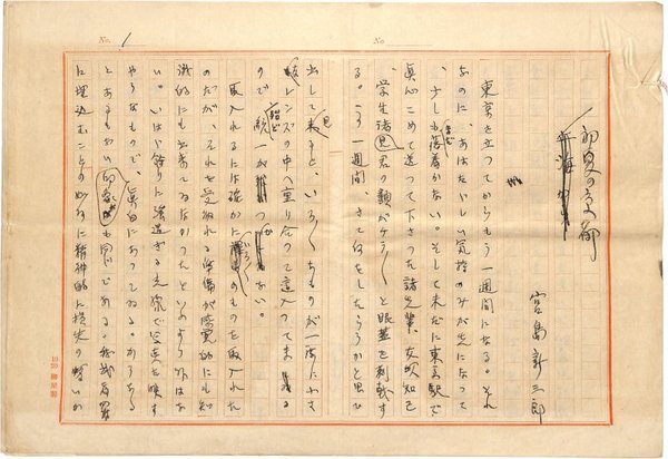 • 解説 『初夏の京都』 ペン書 400字詰原稿用紙10枚完 伏見丸での上海行を前に、京都観光を試みる。(種別)紀行 #八木書店近代自筆物/1.草稿類 #94号近代文学特輯 code07888 ※自筆物につきましては、毎月25日前後に新蒐品を追加しております。PDF形式で御覧になりたい方は https://company.books-yagi.co.jp/archives/news/10928 を参照ください。