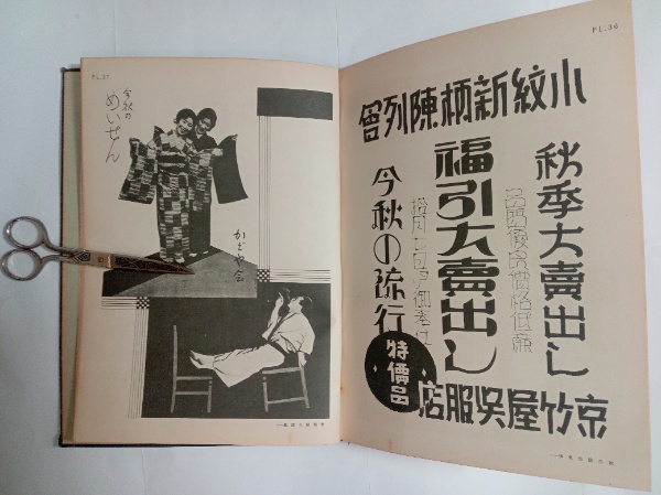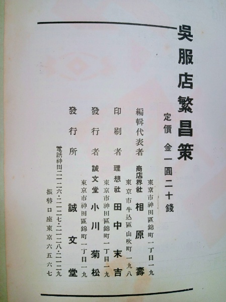 • 解説 菊倍判。本文38頁。図版50頁(店頭スタンド設計、マッチペーパー案、ハンガー、広告文字、陳列窓装置、新聞広告図案など)。「百貨店軍」に対抗する小売店という立場から刊行。モダン時代の呉服店の広告戦略の一書。刊行年の記載はないが、昭和初頭(一桁年)の刊行と思われる。
