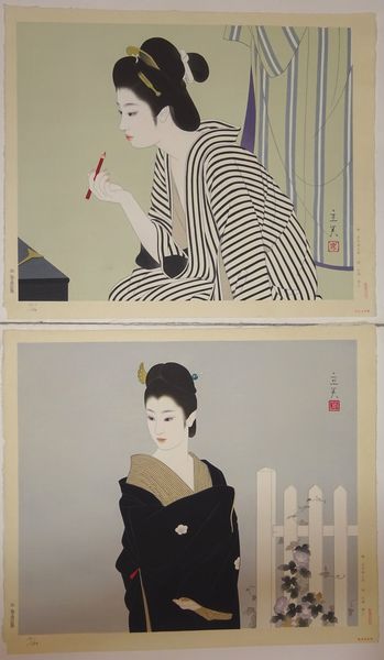志村立美 木版画 「明石町・「口紅」 日本の女二題 第2集