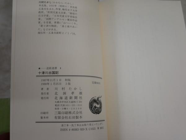 十津川出国記  川村たかし著  3版帯 献呈署名入り ヤケ汚有 シミ多し 道新選書  H2左1