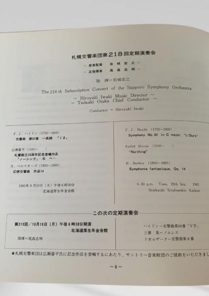 • 解説 札幌交響楽団 プログラムは、まとめてご注文で送料100円割引。 表紙裏表紙のふちに少ヤケ。