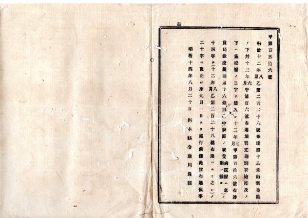• 解説 N25100105○明治布告布達 ○明治12年乙第228号布達第13章勧業委員の下并13年甲第106号布達旅費定則別表検疫及の下へ施療医と挿入 ほか○明治14年 栃木県布達○和本古書古文書