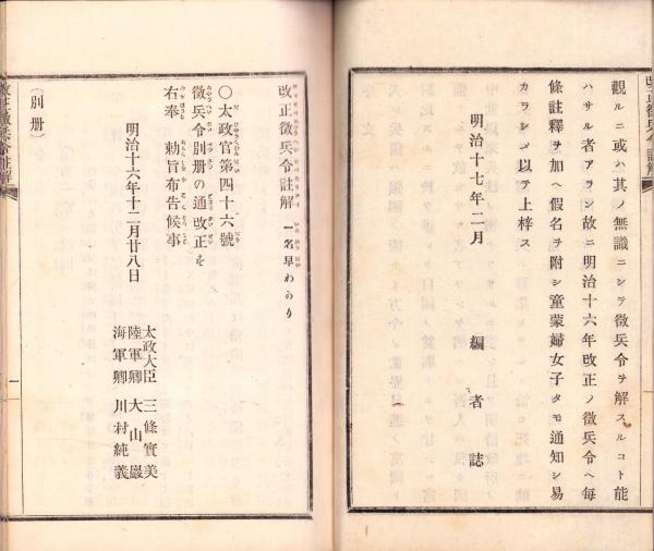 改正徴兵令註解 -明治17年2月出版-
