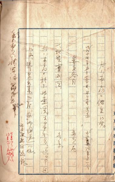 • 解説 五冊之内第五 巻頭に坪内なる人物による文面判読不能の書き入れ有り。「東京市史原稿用紙」罫紙使用 27×19糎 357丁