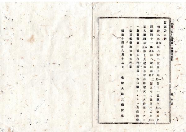 明治布告布達 明治14年○明治9年第82号布告ほか6件の布告中 内務省大蔵省又は大蔵卿とあるを 農商務省農商務卿と改正○太政官布告 栃木県○和本古書古文書
