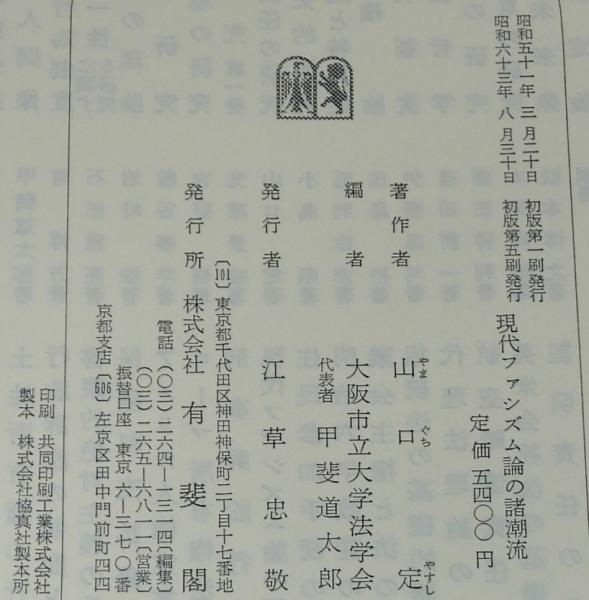 • 解説 現代ファシズム論の諸潮流 山口定 有斐閣 昭和63年8月第5刷 A5判ハードカバー箱入.