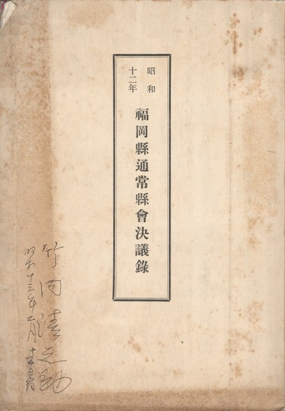 昭和12年福岡県通常県会決議録