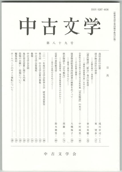 中古文学 89巻