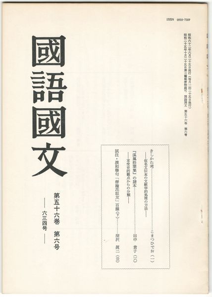 国語国文 634号56巻 6号 きしかた考 仮名文伝本の文献学的処理の方法