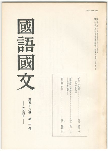 国語国文 654号58巻 2号 「野生」の系譜 芥川龍之介一面