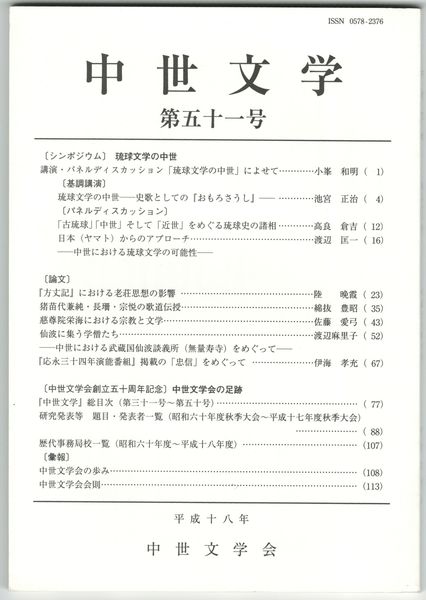 中世文学 51号