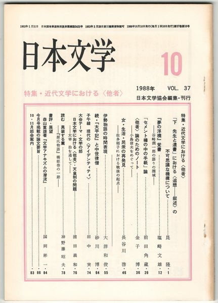 日本文学37巻10号 近代文学における<他者>