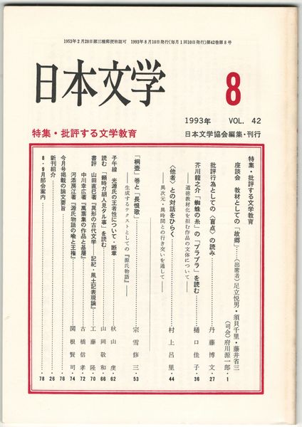 日本文学42巻08号 批評する文学教育