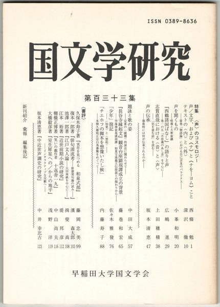 国文学研究 133集 <声>のコスモロジー