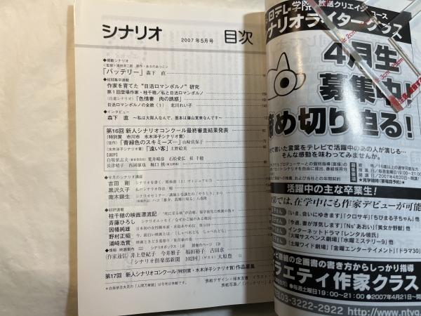 シナリオ 2007年5月号 通巻第706号・第63巻第5号  第16回新人シナリオコンクール/最終審査結果発表  掲載シナリオ:バッテリー(森下直)  作家を育てた“日活ロマンポルノ”研究