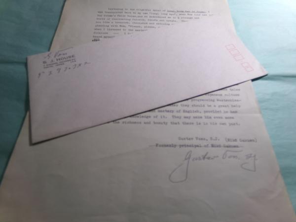 署名入タイプ原稿1枚 詳細は不明、英訳された日本の昔話のテープに関するもの