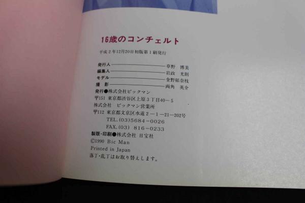 6 5 金野郁奈枝写真集 16歳のコンツェルト 両角英介撮影 平成2年初版