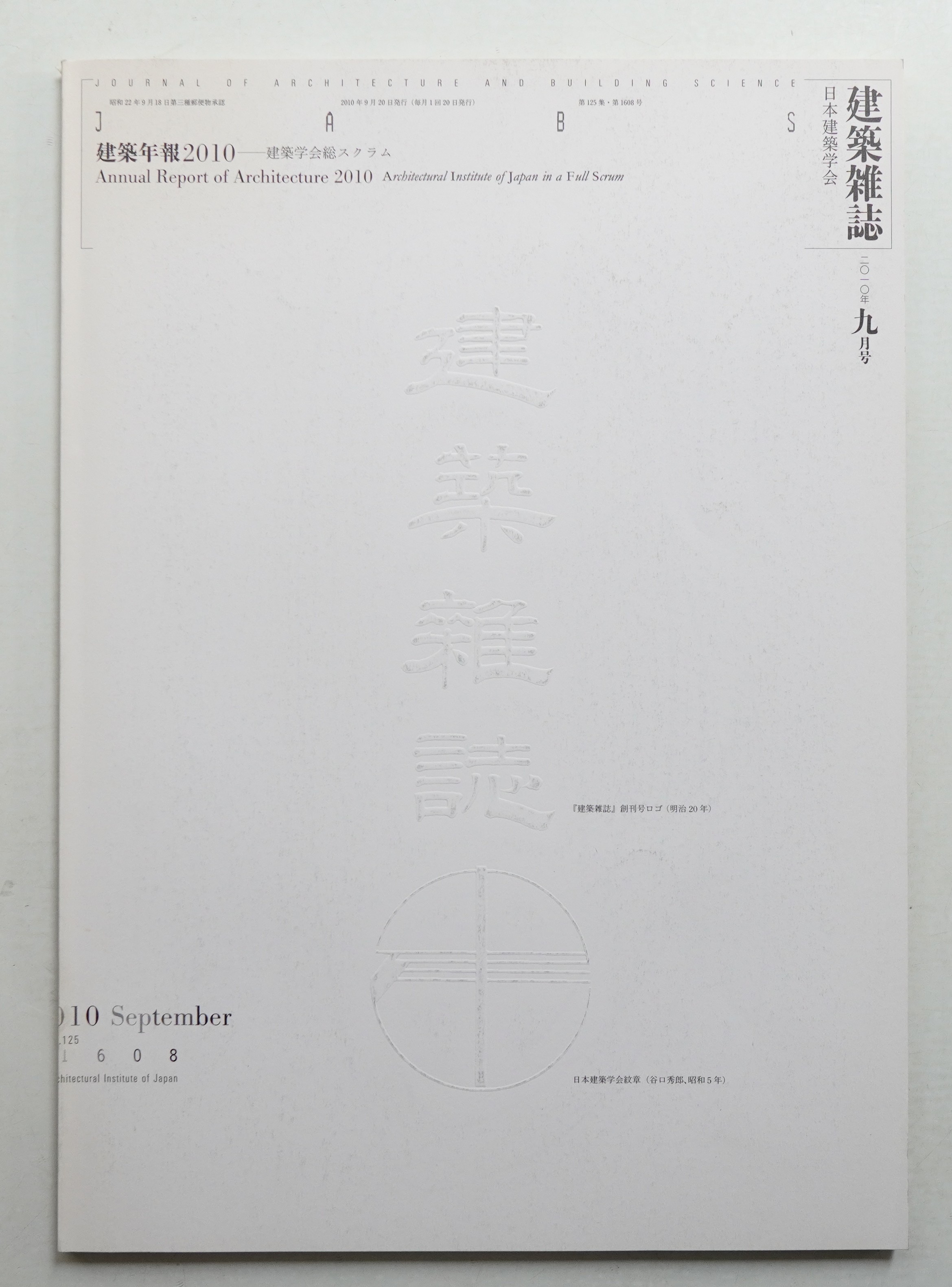 建築雜誌 第125集 第1608号 (2010年9月) <建築年報2010 建築学会総スクラム>