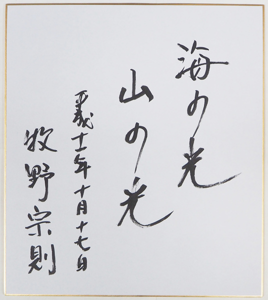 牧野宗則色紙 『海の光 山の光』 筆ペン書