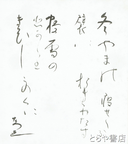 生方たつゑ色紙 「冬山」共袋 「冬山の痩せたる襞におきわたす根雪の光りきびしきこの国」