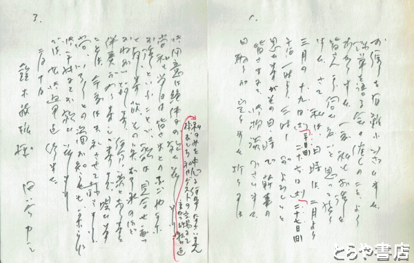 • 解説 書簡便箋4枚(座談会のこと)・葉書は9行