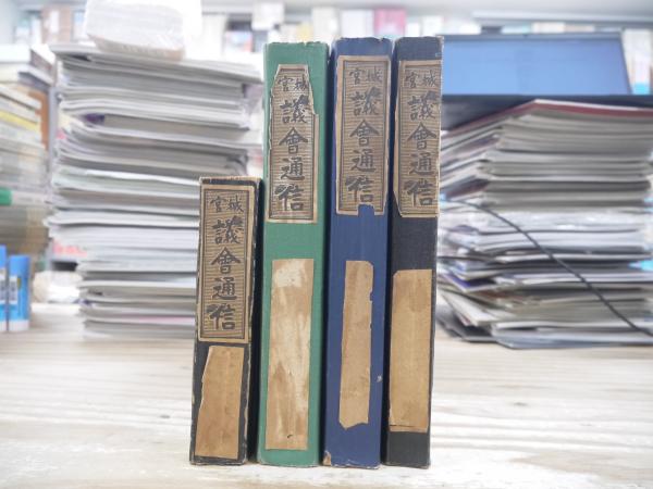 4冊とも経年ヤケ強め、頁少ヤブレあり、表紙シミ、背イタミ、題箋ヤブレヤケ、三方にヤケシミ