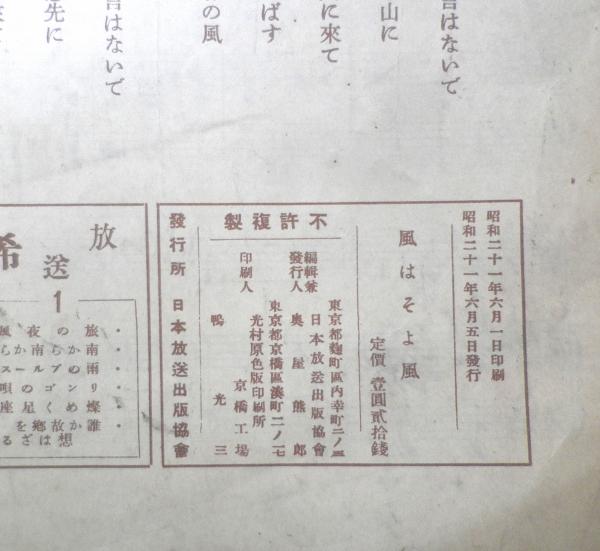 楽譜 風はそよ風 昭和21年 日本放送出版協会 a13