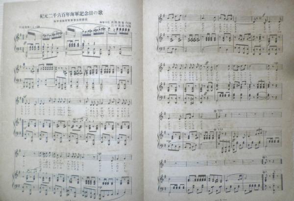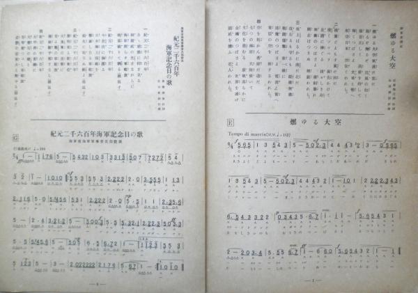 陸軍省選定・燃ゆる大空/佐藤惣之助作詞・山田耕筰作曲 海軍省海軍軍事普及部発表・紀元二千六百年海軍記念日の歌/高橋俊策作詞・江口夜詩作曲