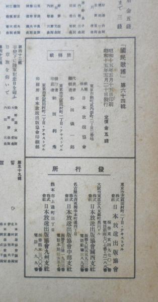 楽譜 国民歌謡 燃ゆる大空/紀元二千六百年海軍記念日の歌 第64集 昭和15年 日本放送協会 ラヂオテキスト a13