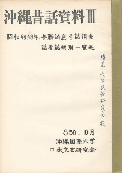 沖縄昔話資料 3  与勝諸島昔話調査