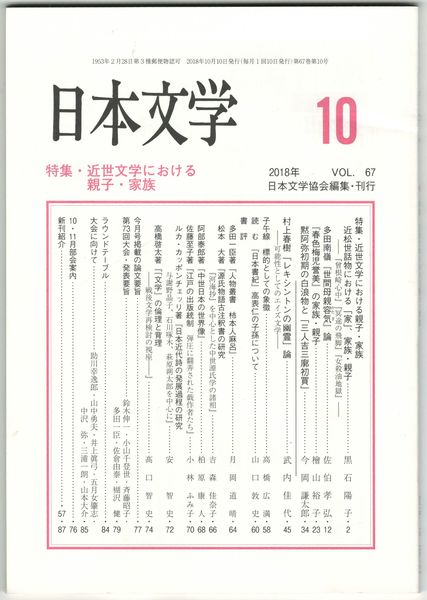 日本文学67巻10号 近世文学における親子・家族