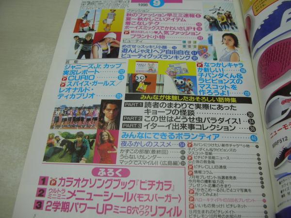ピチレモン 1998年09月号 栗山千明+鈴木愛可+橋本麻美々 表紙 付録付:夏の人気者トラのまき、ピチカラ モスバーガー・シール ミニ6穴リフィル 白石みき 水谷妃里 滝本沙奈 絵理南 平井理央 有賀裕子 伊藤なつ+かな