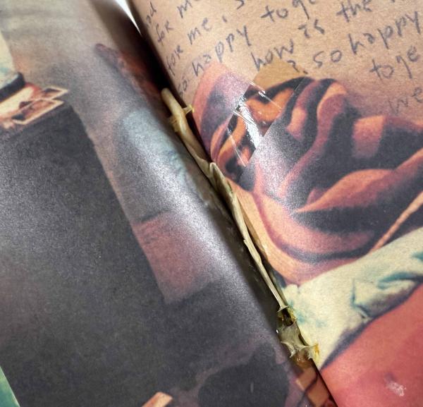 • 解説 便箋10枚・ポストカード・ポジフィルム・ページ内にコンドーム(元々の仕様か不明ですがページに付着した状態です)付き、経年のイタミ、概ね良好