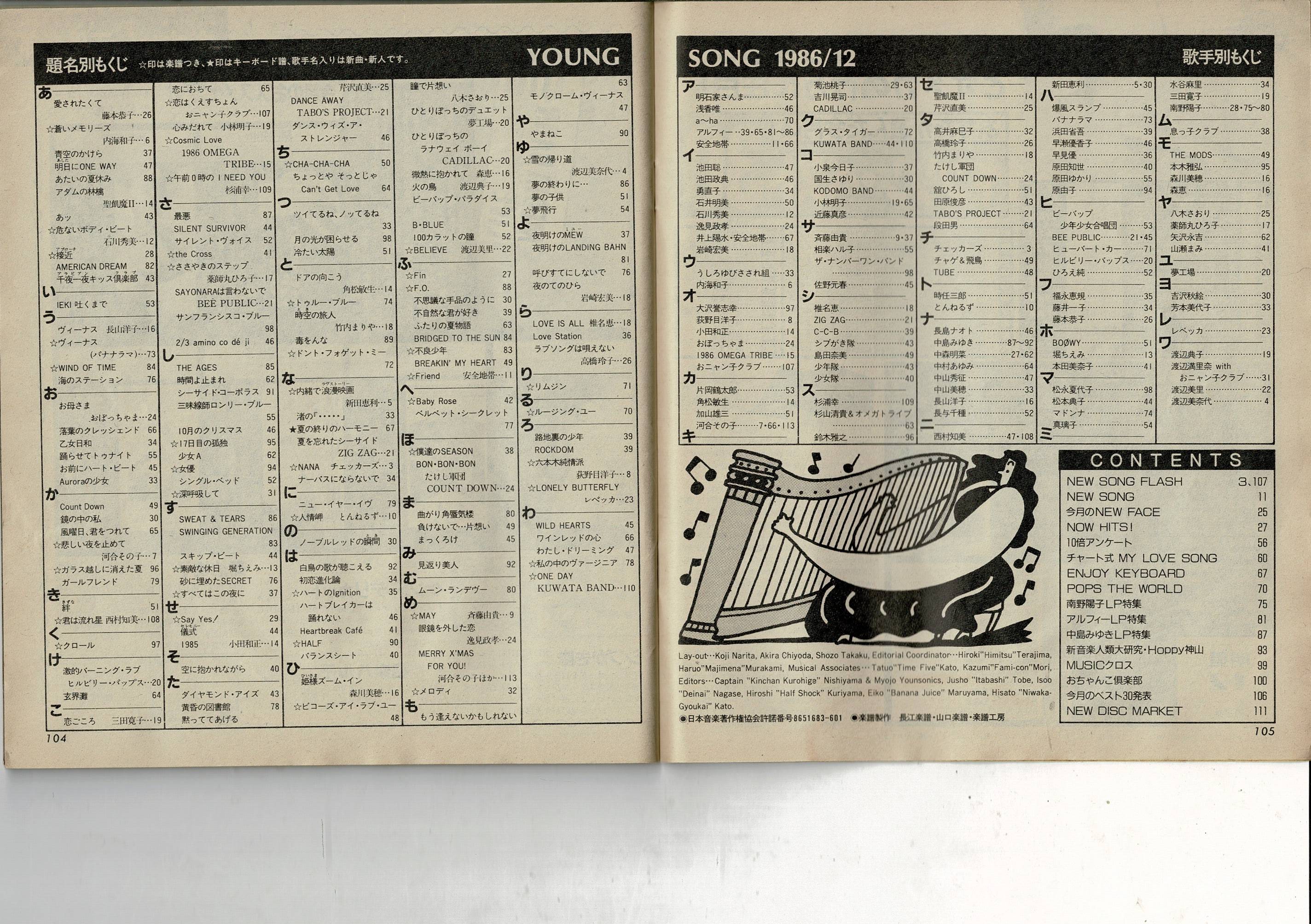 YOUNG SONG 明星 1986年12月号付録特集 チャート式MY LOVE SONG