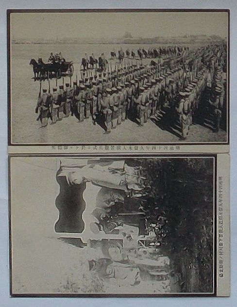 明治四十四年久留米大演習観兵式に於ける御閲兵/ 明治四十四年久留米付近大演習下広川村の御野立場(絵葉書)