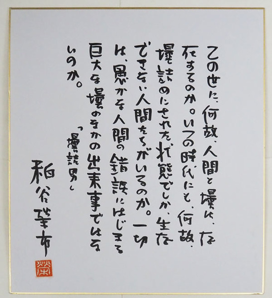 粕谷栄市色紙 Sペン書落款入