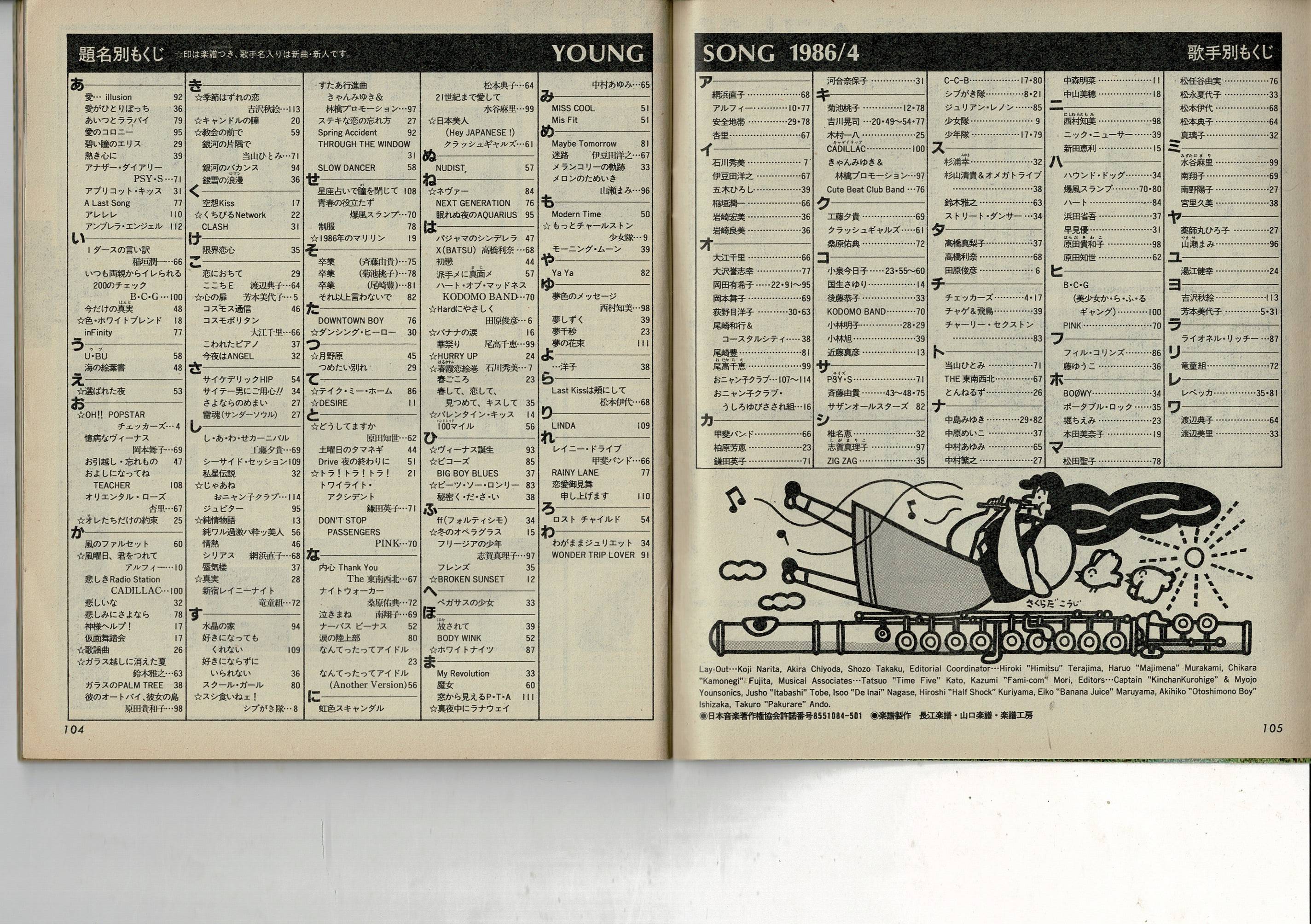 YOUNG SONG 明星 1986年4号付録 ヤンソンアルバム スペシャル 5 斉藤由貴 吉川晃司 小泉今日子 岡田有希子 おニャン子クラブ