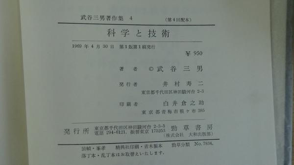 武谷三男著作集 4 (第4回配本) 科学と技術