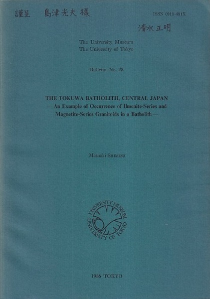 The Tokuwa Batholith,Central Japan(英文) An Example of Occurrence of Ilmenite-Series and Magnetite-Series Granitoids in a Batholith <The University museum The University of Tokyo Bulletin No.28>