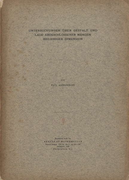 Untersuchungen uber Gestalt und Lage Abgeschlossener Mengen Beliebiger Dimension Reprint from the Annals of Mathmematics : Vol30/1、 1928