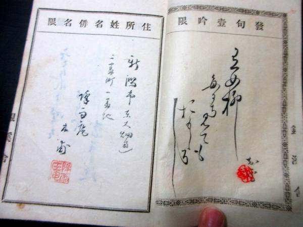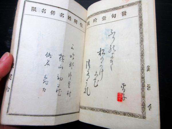 • 解説 和本明治期新潟俳句資料「各宗匠名吟幹事」1冊/降雨庵木甫/月守軒月舟など/古書古文書/手書きです。