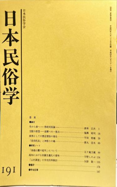 日本民俗学 第191号Bulletin of the Folklore Society of Japan NIHON-MINZOKUGAKU
